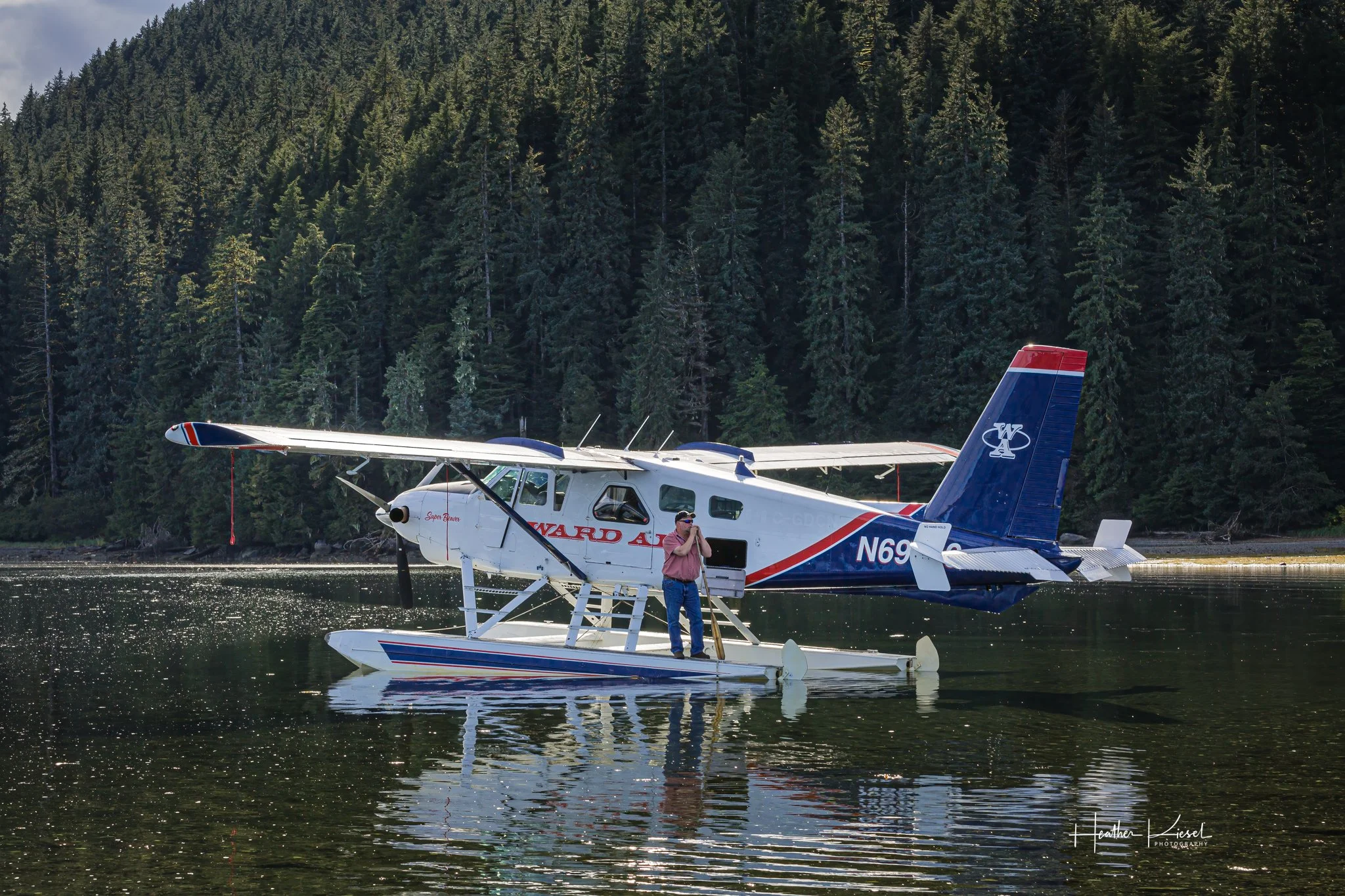 Either way, the story begins there — with a blue and red floatplane resting on Southeast Alaska water, ready for whatever the day allows.